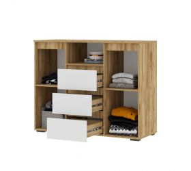• Эргономика и безопасность: детские комоды обычно разработаны с учетом особенностей физиологии детей, их роста и потребностей. Они обладают низким центром тяжести, что уменьшает риск переворота.