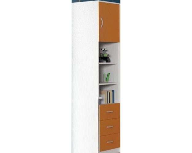 Шкаф-пенал №1 (полуоткрытый) Белое дерево/Оранжевый