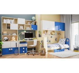 Коллекция мебели с акцентами небесно-голубого цвета понравится маленькому спортсмену, исследователю или музык..
