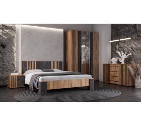 Шкаф 3х ств. 1240 Марракеш от спального гарнитура Марракеш - выполнен в стиле лофт, который в последнее время все больше пользуется популярностью. Модули этого набора мебели подобранные по Вашему желанию, помогут создать неповторимую обстановку в спальной комнате. Гармоничное сочетание цветов «Дуб вотан» и «Цемент тёмный» создают атмосферу уюта.