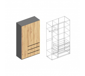 Шкаф двустворчатый с полками Моника темно серый лофт / дуб золотистый сочетает в себе красоту и практичность, что делает ее идеальным вариантом мебели для украшения вашей современной комнаты.